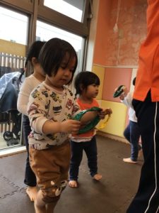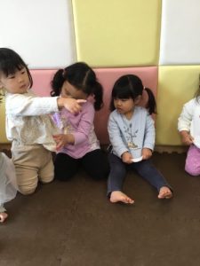 「レッドあったー!」「ブルー!」とお友達の洋服やお部屋の中のものから歌に出てきた色を探して上手に歌うことができました💖