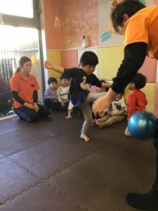 0歳児さん達は保育者と一緒にジャンプの練習❗️