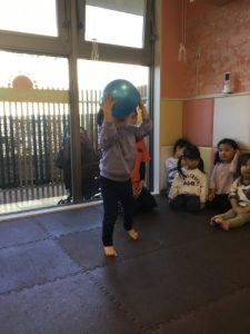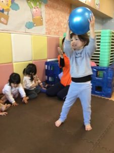 1歳児さんと2歳児さん達はボール投げとボールキャッチ、さらにボールキックもしました🦵⚽️