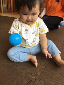 もも組🍑のお友達もボールを握って感触を楽しんでいました♪