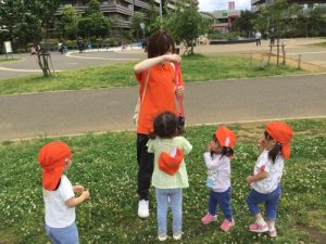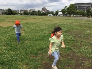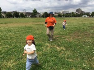 りんご🍎組さんは、追いかけっこに夢中で、『待て待て』と言いながら沢山走りました。