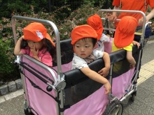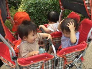 1歳児クラスの子達はカートの中でのんびり♪