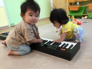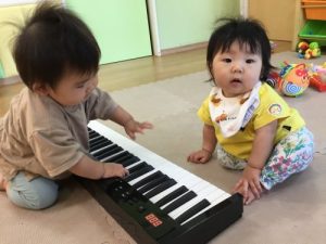 ピアノを叩いて不思議そうな顔です☺️