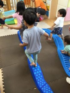 2歳児さんは慣れた様子でバランスを取りながら平均台を頑張って渡っています❗️