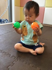 投げて遊ぶ子、ボールを握って歩き回る子、そしてボールの観察をする子と色々な遊び方をするので見ていて飽きません❤️