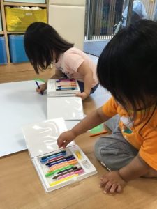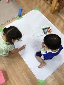別の日にはソフトブロックや模造紙を用意してお絵描きをしました❗️