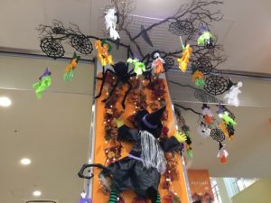 蜘蛛や魔女が柱に張り付いていて子ども達もびっくり😳