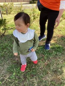 0歳児さんも公園内を歩いて宝探しをしていました❗️