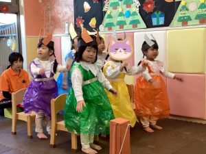 りんご組さんは3匹のヤギのがらがらどんの劇をしました🐐