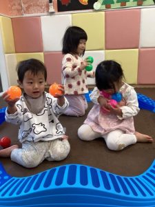 ボール遊びも大人気で子ども達、みんな腕いっぱいにボールを持ってニコニコです❤️