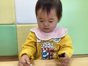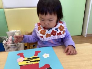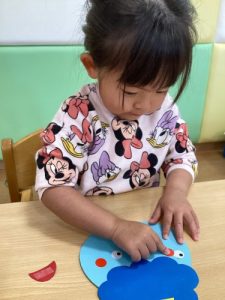 1歳児さん、上手に指先を使ってお顔にパーツをぺたり❗️