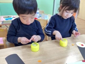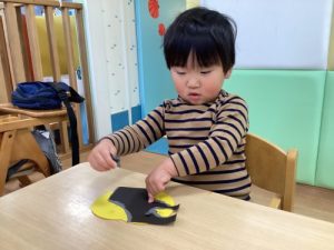 2歳児さん達には蛇の体も作ってもらいましたがみんな集中して作ることができていました☺️
