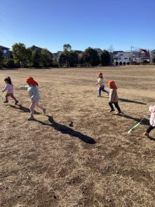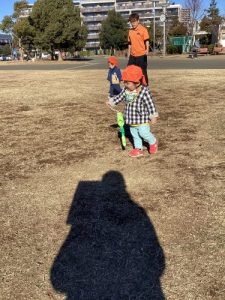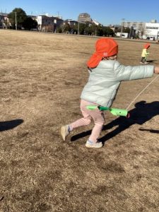 公園に移動して紐を持ってみんなで凧揚げ☺️