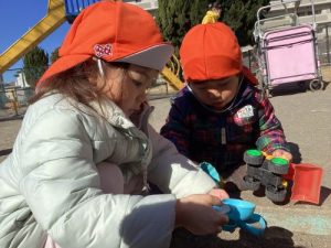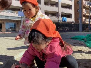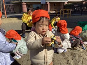 保育者も真剣な眼差しに声をかけられませんでした❗️