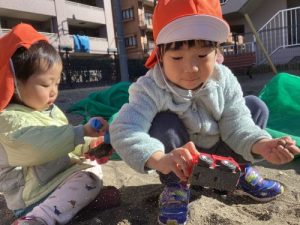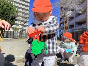 見つけた車を保育者に嬉しそうに見せに来てくれました❗️