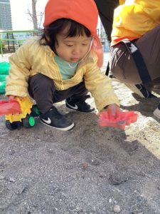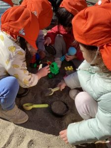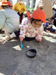 もも組🍑さんもスコップを使って上手に砂をすくい楽しんでいました。