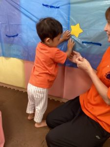 0歳児さんもポンポンを持ち上げてお星さまを捜索中❗️