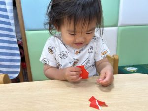 1歳児さんはまず折り紙を破りました✨