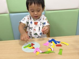 その後は破った折り紙をぺたりぺたり❗