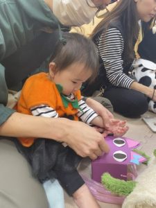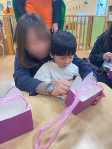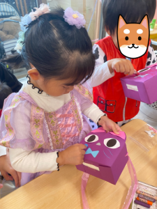 猫の目を貼ったり、クレヨン🖍️を使っておひげを親子で一緒に作り子ども達も楽しんでいました。