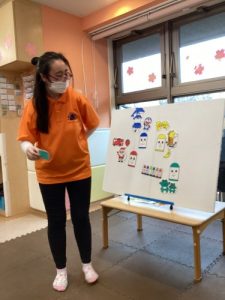 保育者からは「どんな色が好き」のパネルシアターのプレゼントです🖍️