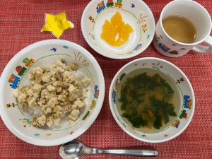 サンライズキッズ保育園 ◎給食の様子 今日の給食のマーボー丼は食べやすく、たくさん食べてくれました。...