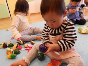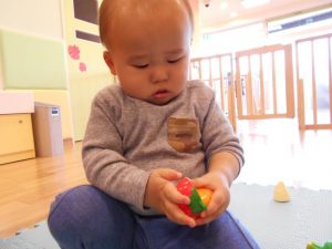 お野菜をくっつけたりはなしたりと夢中になっています![]()