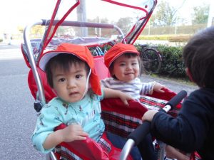 初めての4人乗り座りバギーでドキドキしていた様子でしたが時間がたつと…