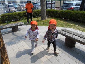 「あるこう~あるこう~♪ 」とさんぽの歌をうたってルンルンなりんご組さん![]()