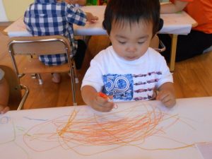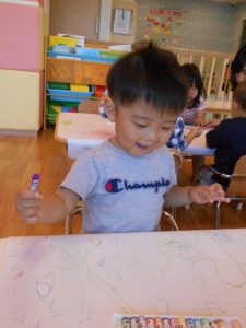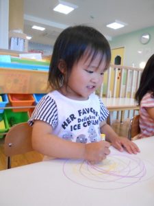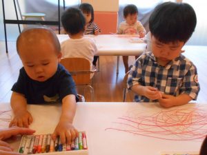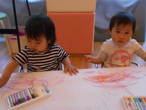 クレヨンで描くことを楽しんでいる様子でした