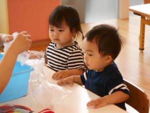 先ずは保育士が作り方を伝えます![]()