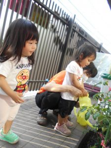 プランターのお花やお野菜は、子どもたちの水やりのおかげで元気に育っています
