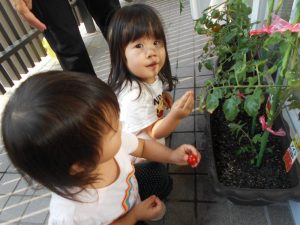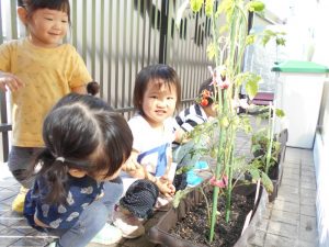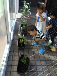 『トマト!!あった!!』『いつお花が咲くのかな~??』とみんな興味津々です!!