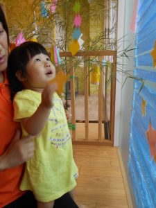 7月7日は七夕のお祭りです園でも笹の葉や短冊を飾って七夕会をしました