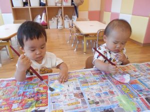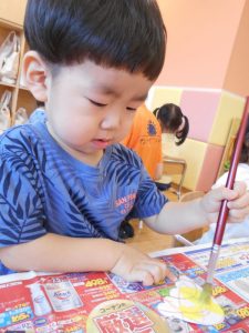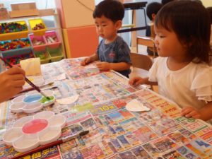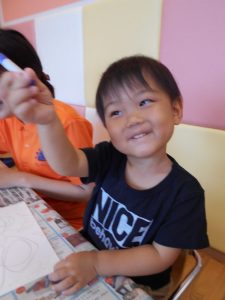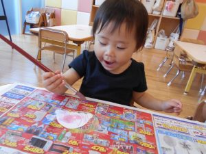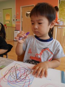 まず、グルグルと楽しく画用紙にお絵描きしました