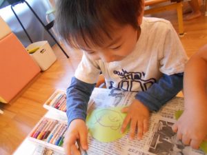 顔を描いたり色彩を考えたり、楽しんで描いていました♪