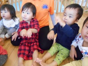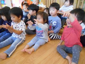 子どもたちは手でチョウチョをつくって~♪ひらひら~