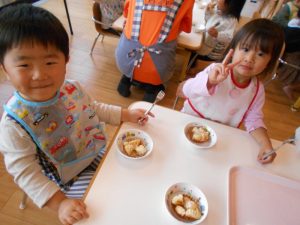 お誕生会 午後のおやつ手作りりんごケーキ♪