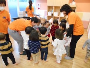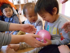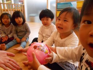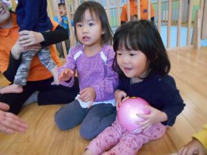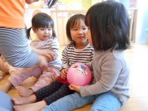 歌のリズムを感じながら、優しくボールを渡せるようになってきています♪