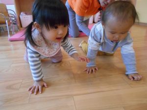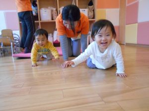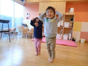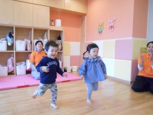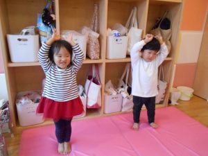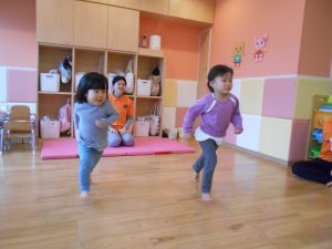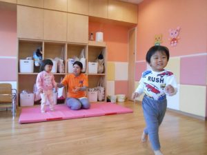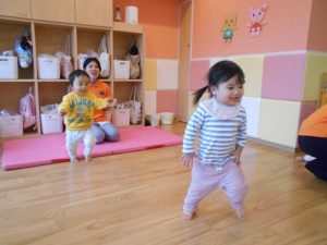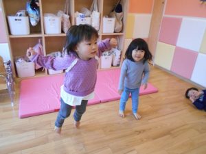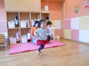 お部屋の中で、マットからマットへ動きを変えてタッチランをしました!