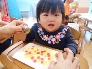 ポンポン♪とスタンプを押す感触に興味津々!