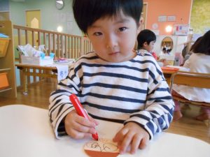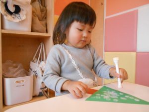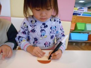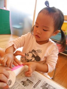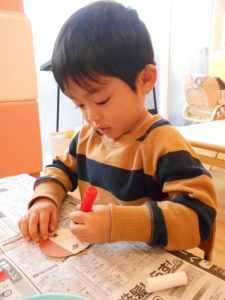 指をつかって丁寧にのり塗っていました♪