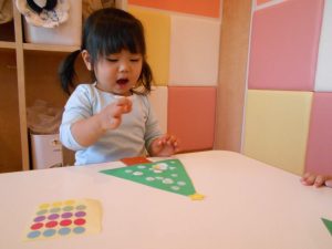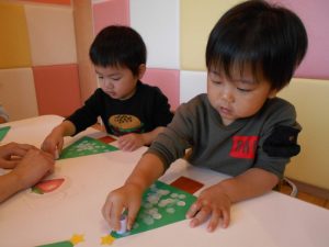 折り紙をキレイに並べて貼ったり、次は何色を貼ろうかな⁇と