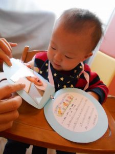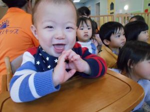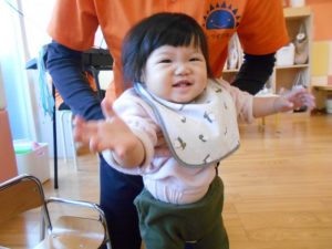 0歳児クラスのお友だちは手をパチパチ♪と叩いて満面の笑みのお返事でした![]()
