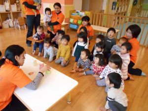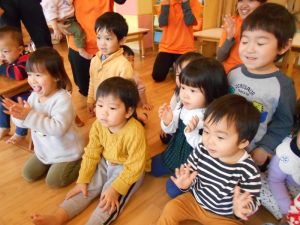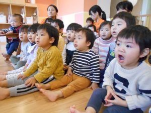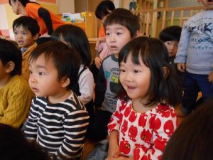0~2歳児みんなが集まって…お誕生日会のはじまりです!!