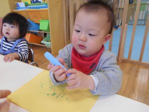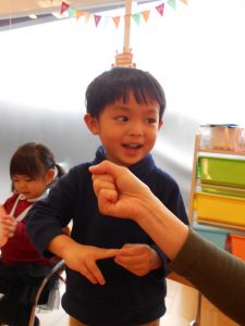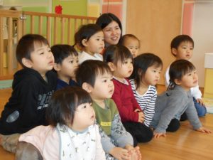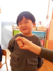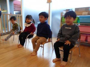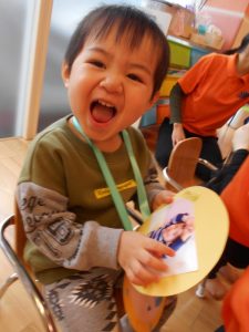 1月生まれのお友だちは自分の誕生日会ということが良く分かっており「どうぞ」っと言われると用意された椅子にはりきって座っていました![]()
