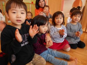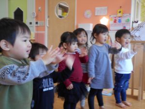 ピアノの伴奏が流れはじめると…自然と手を叩いて元気いっぱいに歌い始める子どもたち!