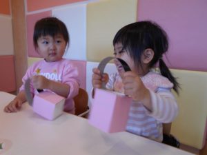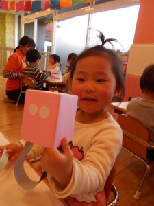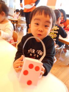 今週は、節分会に向けて、豆まき練習、升とオニのとんがり帽子をつくりました![]()