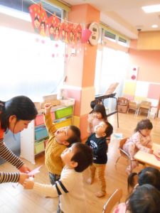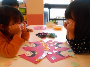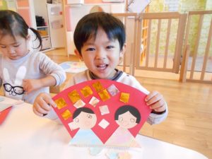 園では「うれしいひなまつり」を歌ったり、ひなまつりの絵本を読んだり、製作をして楽しんでいます♪