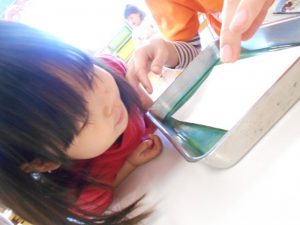 保育士やお友だちと一緒に歌を歌ったりお話したりと、いつも楽しそうないちご組さん♪
